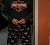 For restful nights and lazy days when getting dressed is optional, go with our Bar & Shield Long Sleeve Pajama Set. The top is cut from super soft cotton/modal jersey, while the bottoms are an equally cozy cotton twill flannel. These men’s pajamas have a comfortable elastic drawstring waistband and rib knit trim on top to help keep its shape. This set is finished with a custom allover Bar & Shield pattern on bottom, plus our graphics going all-in on front and riding down the sleeves.