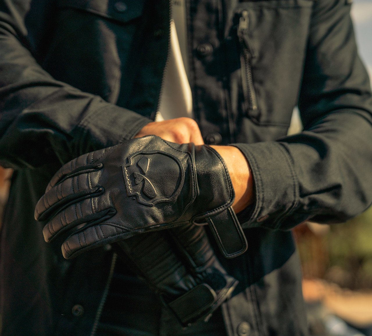 Get a grip on protection that nods to our iconic stylist’s creative legacy in the Willie G Skull Graphic Leather Riding Gloves. Built from goatskin leather with an adjustable Velcro wrist, these touchscreen compatible motorcycle gloves wisely feature D3O Ghost armor at the knuckles plus padded palms to minimize road rattle. Finished with distinctive stitching and Willie G’s revered Skull graphic embossed for an elevated look. Snag yours while supplies last.